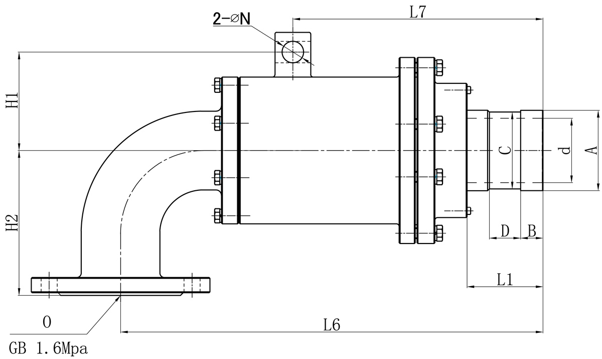 | Model | O | d | L1 | L6 | L7 | N | H1 | H2 | 法蘭式外管尺寸對照表 | |||